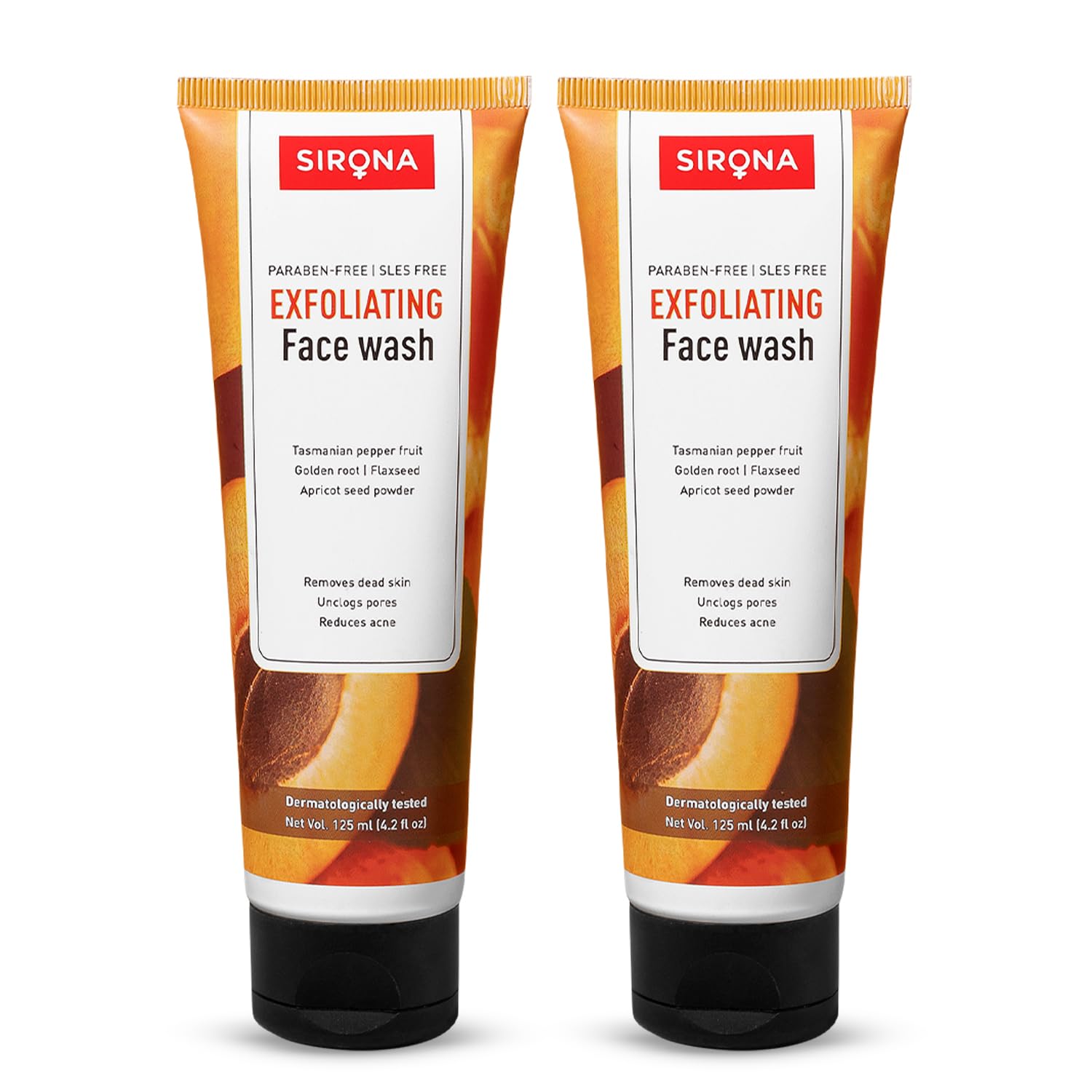 Sirona Exfoliating Natural Face Wash for Men & Women - 125 ml (Pack of 2)