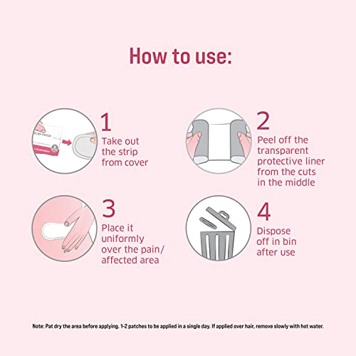 • UP TO 12 HOUR ACTION: Apply the patch discreetly on your skin to bid goodbye to menstrual pain for up to 12 hours. It provides sustained medicine release for 12 hours unlike the analgesic sprays creams or ointments which require re-application every 3-4 h