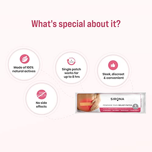 • PAIN RELIEF: Sirona Pain Relief Patches are designed to provide immediate and lasting relief from period cramps. The herbal formula provides pain relief to the muscles and joints of the abdomen back and legs.