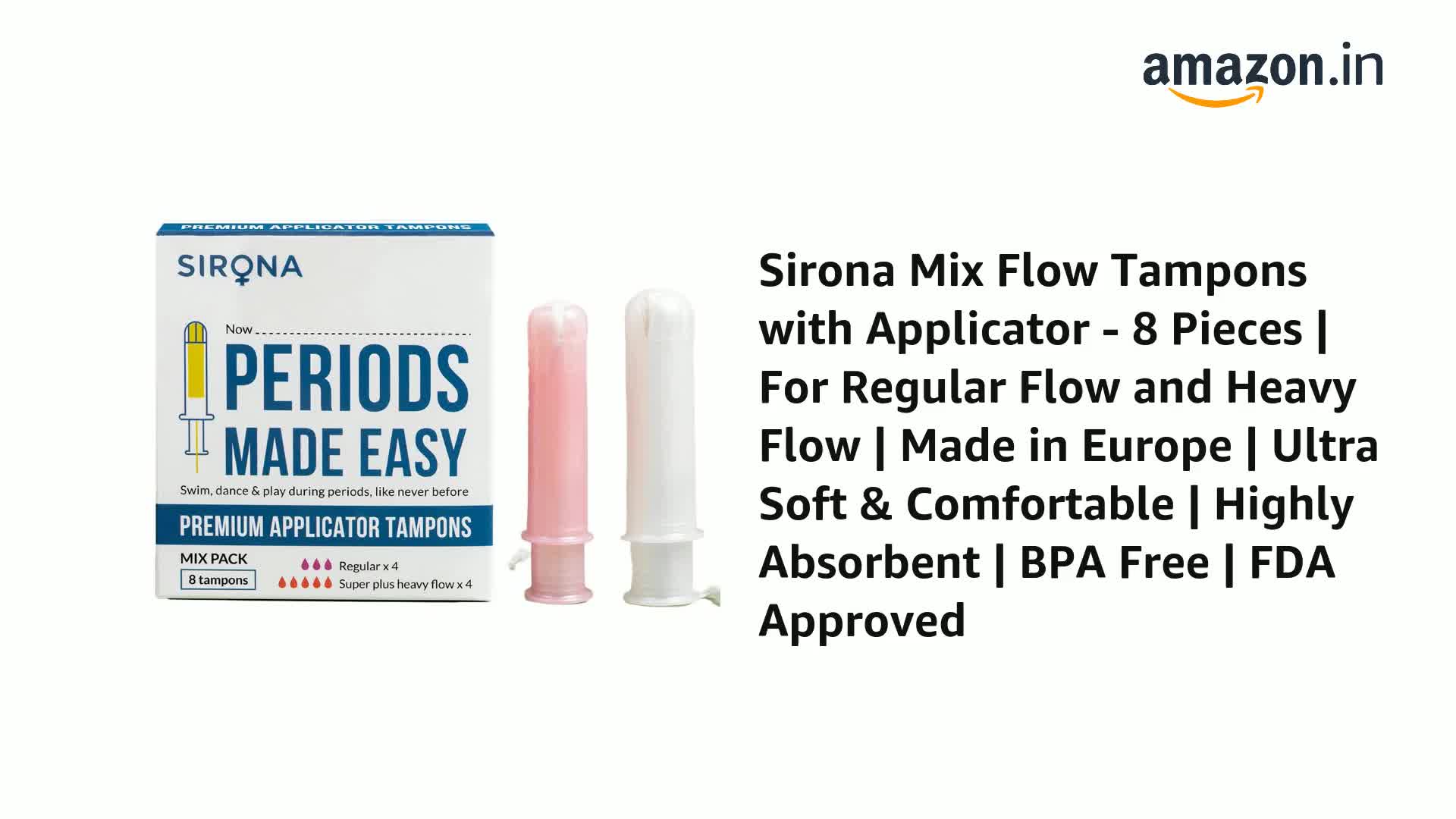 Sirona Fda Approved Mix Flow Tampons With Applicator For Regular And Heavy Flow - 8 Tampons