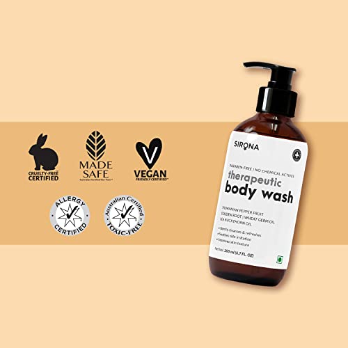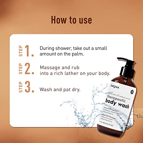• Sirona Therapeutic Body Wash is probably India's 1st Body Wash with the real exotic vegetable & essential oils to take on dirt suntan/sunburn rashes Skin itching and body odor