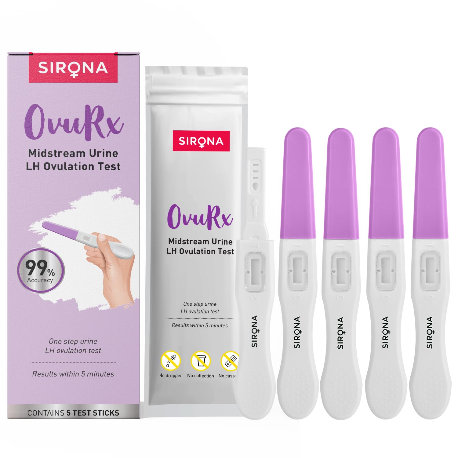 • Pack of 5 sticks The Sirona OvuRx ovulation test kit comes with 5 sticks that aid easy & quick testing. Though just one stick shows accurate results you can use other sticks to check in case the result comes out to be negative or invalid. All the ovulatio
