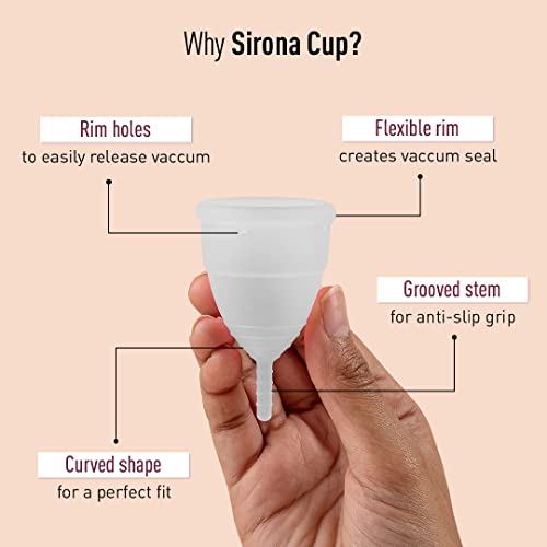 Sirona Reusable Menstrual Cup for Women - Small Size with Pouch (Pack of 2), Ultra Soft, Odour and Rash Free, No Leakage, Protection for Up to 8-10 Hours, FDA Approved