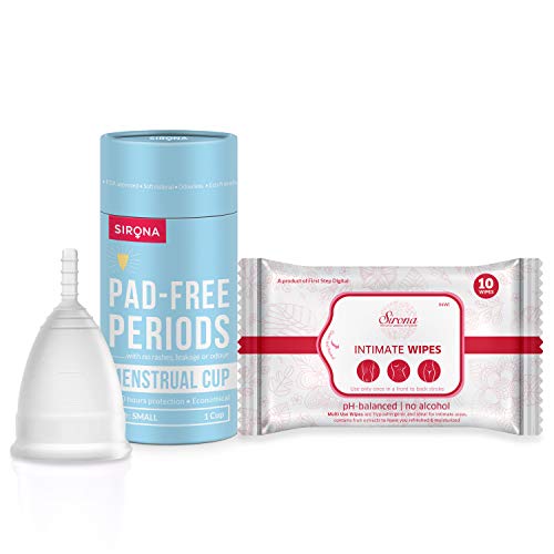 Sirona Reusable Menstrual Cup - Small with Intimate Wet Wipes - 10 Wipes