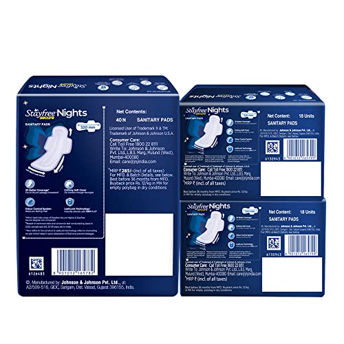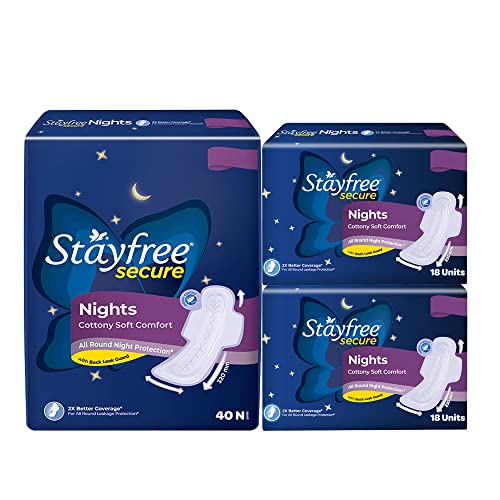 Fear of staining not letting you sleep well? Trying to not move in your sleep so that your pad doesnât leak from the back or the sides? Tried a million things but still get that leak at back while sleeping?? Now sleep worry free with Stayfree Secure Nights with LeakLock technology which provides up to 100% leakage protection all through the night. The âNEW Stayfree Secure Nightsâ has extra long length (320mm) and wider back that provides 2X better coverage vs any regular pad and prevents leakage from back and sides no matter how you sleep. So get the sleep you so deserve with the âNEW Stayfree Secure Nightsâ.