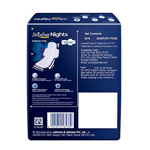Fear of staining not letting you sleep well? Trying to not move in your sleep so that your pad doesnât leak from the back or the sides? Tried a million things but still get that leak at back while sleeping?? Now sleep worry free with Stayfree Secure Nights with LeakLock technology which provides up to 100% leakage protection all through the night. The âNEW Stayfree Secure Nightsâ has extra long length (320mm) and wider back that provides 2X better coverage vs any regular pad and prevents leakage from back and sides no matter how you sleep. So get the sleep you so deserve with the âNEW Stayfree Secure Nightsâ.