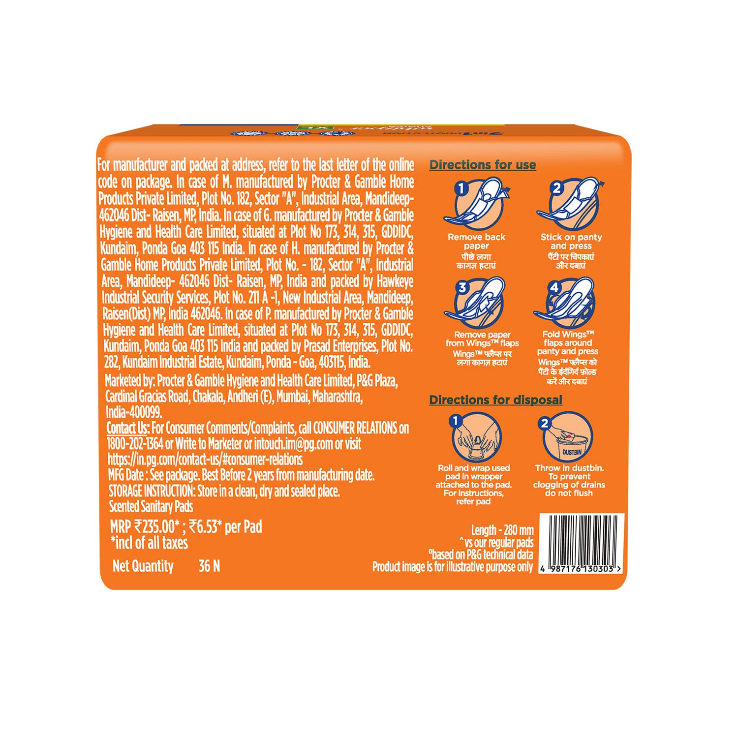 Whisper Choice XL pads provide 100% stain protection all day. These pads are approximately 50 mm longer and have a 20% wider back vs. Regular Pad for better coverage. Available with wings which keep the pad in its place.