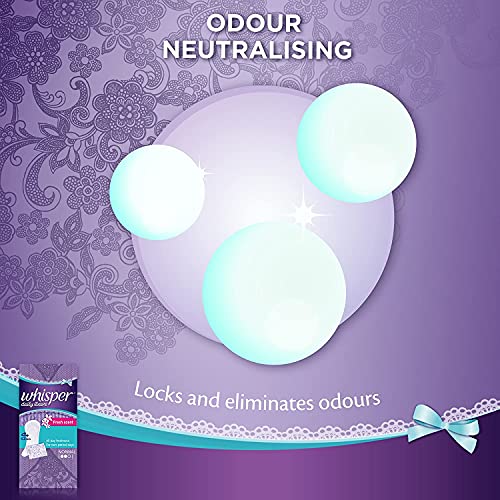 Whisper daily liners provide All Day Freshness with a comfortable & breathable design. They have Odour Neutralising Technology. They help you stay fresh all day long on your regular days protecting you against vaginal discharge or on the days before your period when you are unsure about when it will start. These panty liners not only provide reliable protection against wetness but also have a floral scent for confidence that lasts all day.