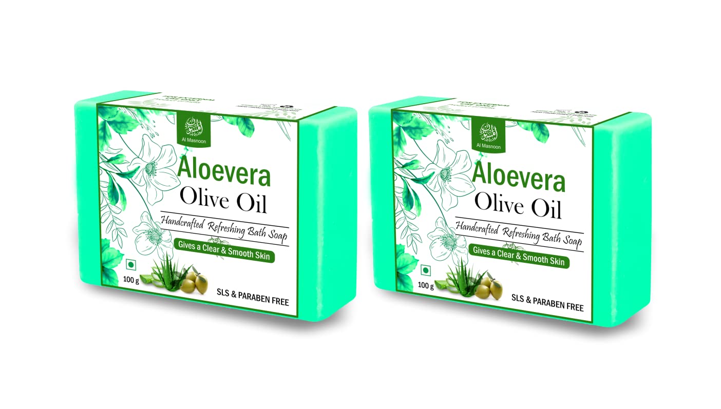 AL MASNOON Aloevera Soap with Olive Oil 100g (pack of 2) Handcrafted Refreshing Bathing Bar