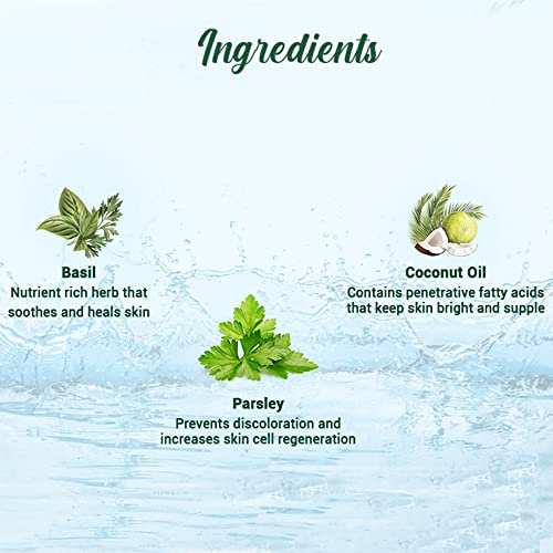 This clear soap is a blend of pure basil parsley margosa wheat germ and coconut oil to gently wash away body impurities without disturbing the skinâs natural pH balance.