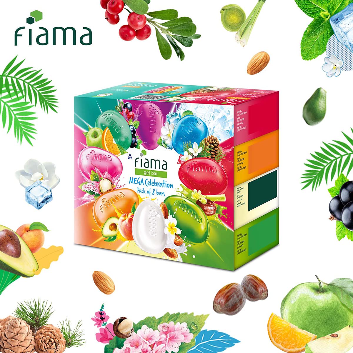 Wash away the troubles of your day with the foamy fresh and fun Fiama Gel Bars. And while you enjoy your Fiama bath let its skin-conditioners work their magic to give you softmoisturised and glowing skin. Try the Fiama Mega Celebration pack with 8 unique gel bars it contains the 3 new variants too each with unique ingredients and natural goodness that will refresh your mind and body. So uplift your mood and get ready to make every bath a highlight of your day.