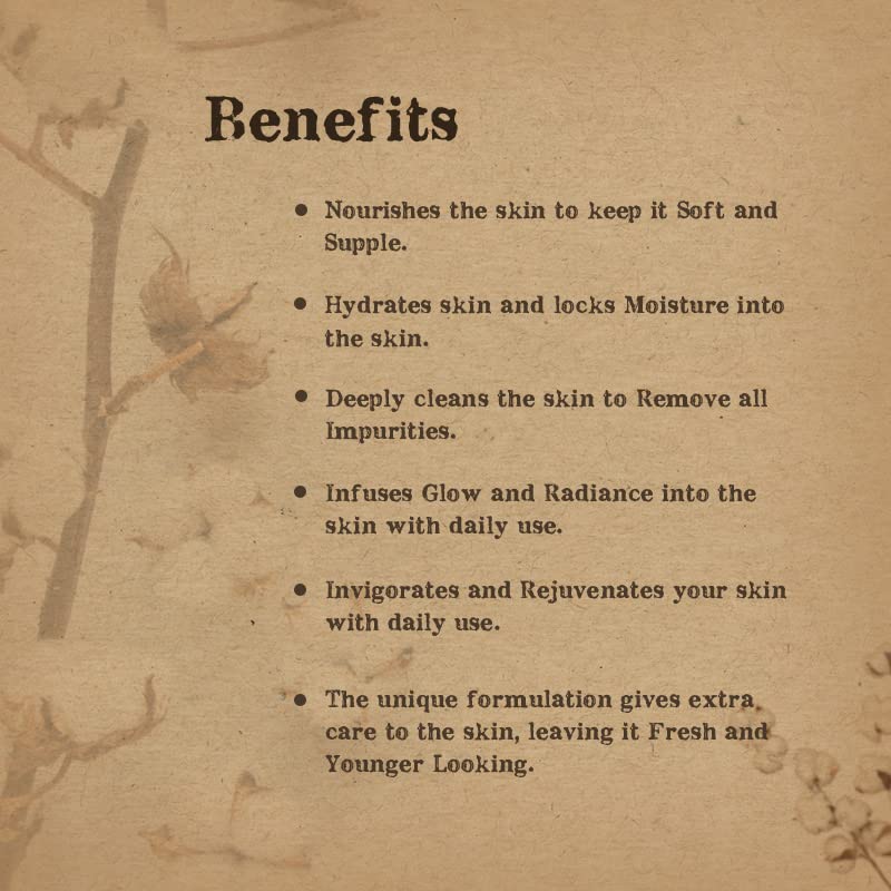 Our Nourishing Silk with Panchamrit unlocks the ancient secrets of Ayurveda to give you healthy glowing skin. Panchamrit consists of 5 essential ingredients: Milk Yogurt Raw Honey Cane Sugar and pure Desi Ghee. Each ingredient in Panchamrit is carefully chosen to give your skin an extravagant experience right at home. The 100 times washed ghee used in this is sourced directly from our farm which is home to pure Gir breed cows. The highest quality ingredients are brought together to create this beautiful bar of that gives you bright skin that is free of all blemishes. The deep nourishment and hydration provided by our is due to the natural ingredients that have been carefully brought together to give you a fragrant light and cleansing . Using this everyday helps you get skin that is cleansed gently but thoroughly along with an even skin tone and smooth skin texture. Our Nourishing Silk with Panchamrit is ideal for all skin types.