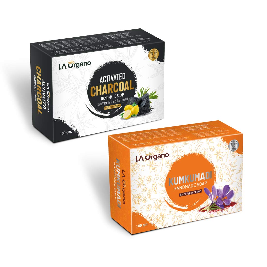 LA Organo Charcoal & Kumkumadi Handmade Bath Soap (100g each Pack Of 2)