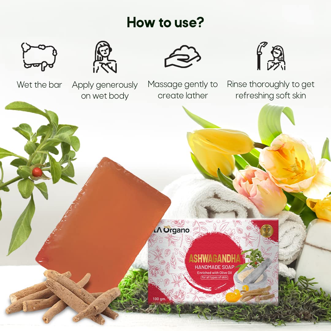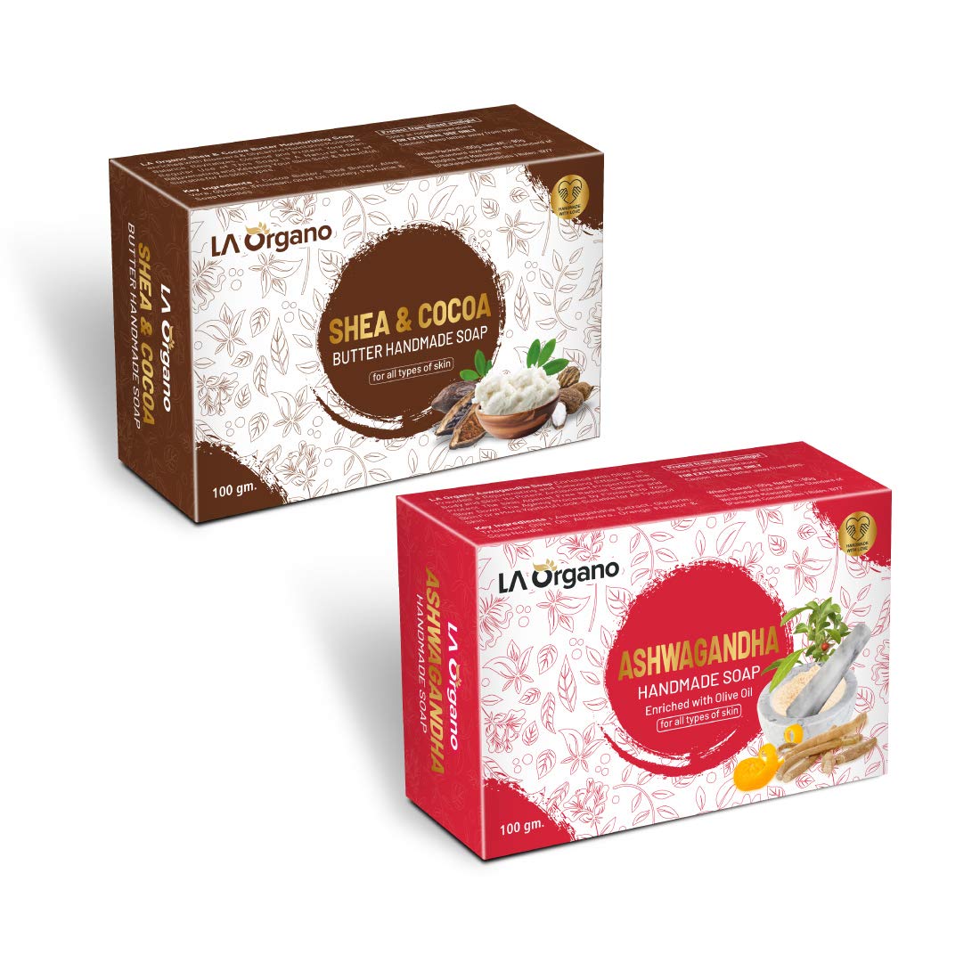 LA Organo Ashwagandha & Shea Cocoa Handmade Bath Soap (100g each Pack Of 2)