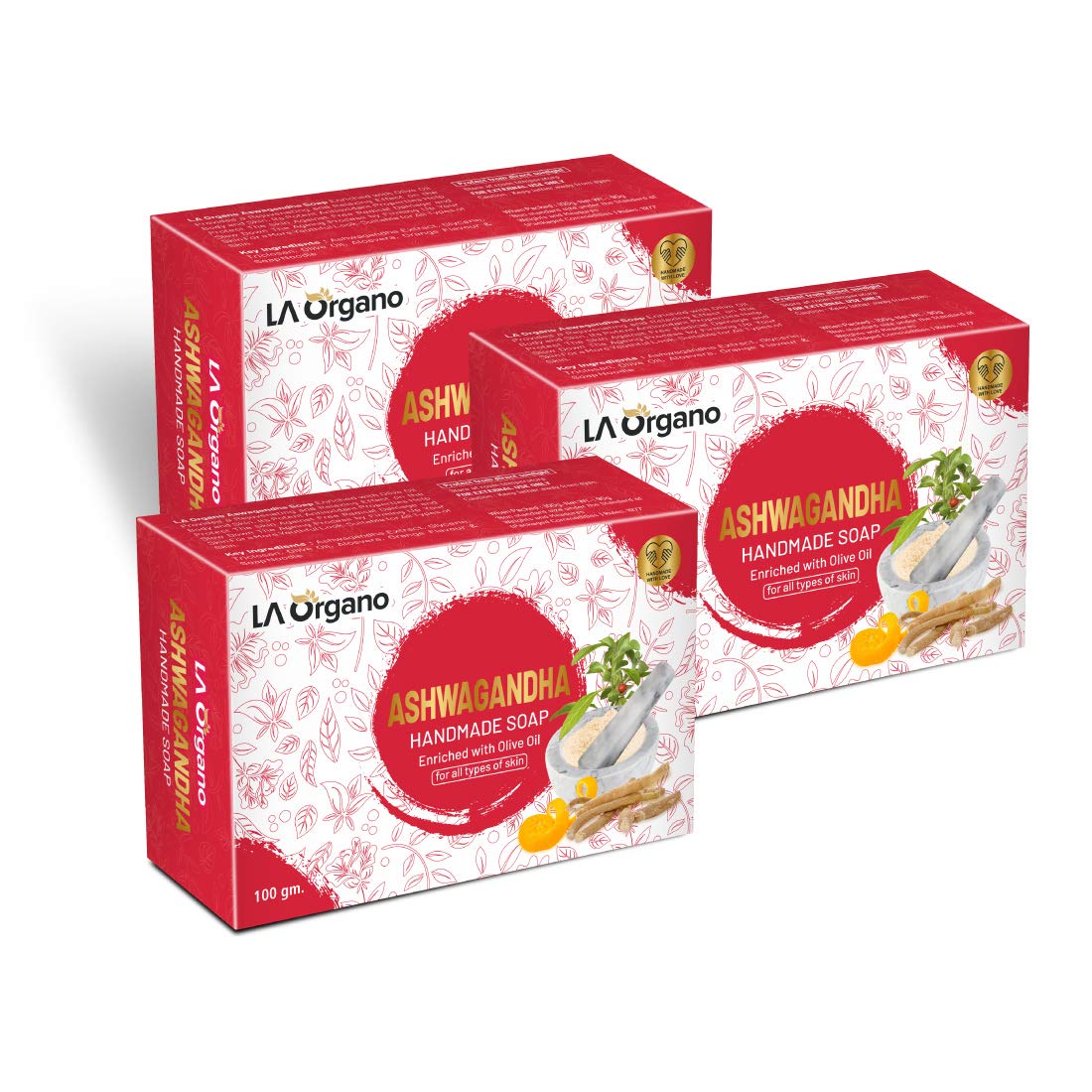 LA Organo Ashwgandha Handmade Natural Bath Soap Orange Flavour Enriched with Olive Oil - 100gm-(Pack of 3)