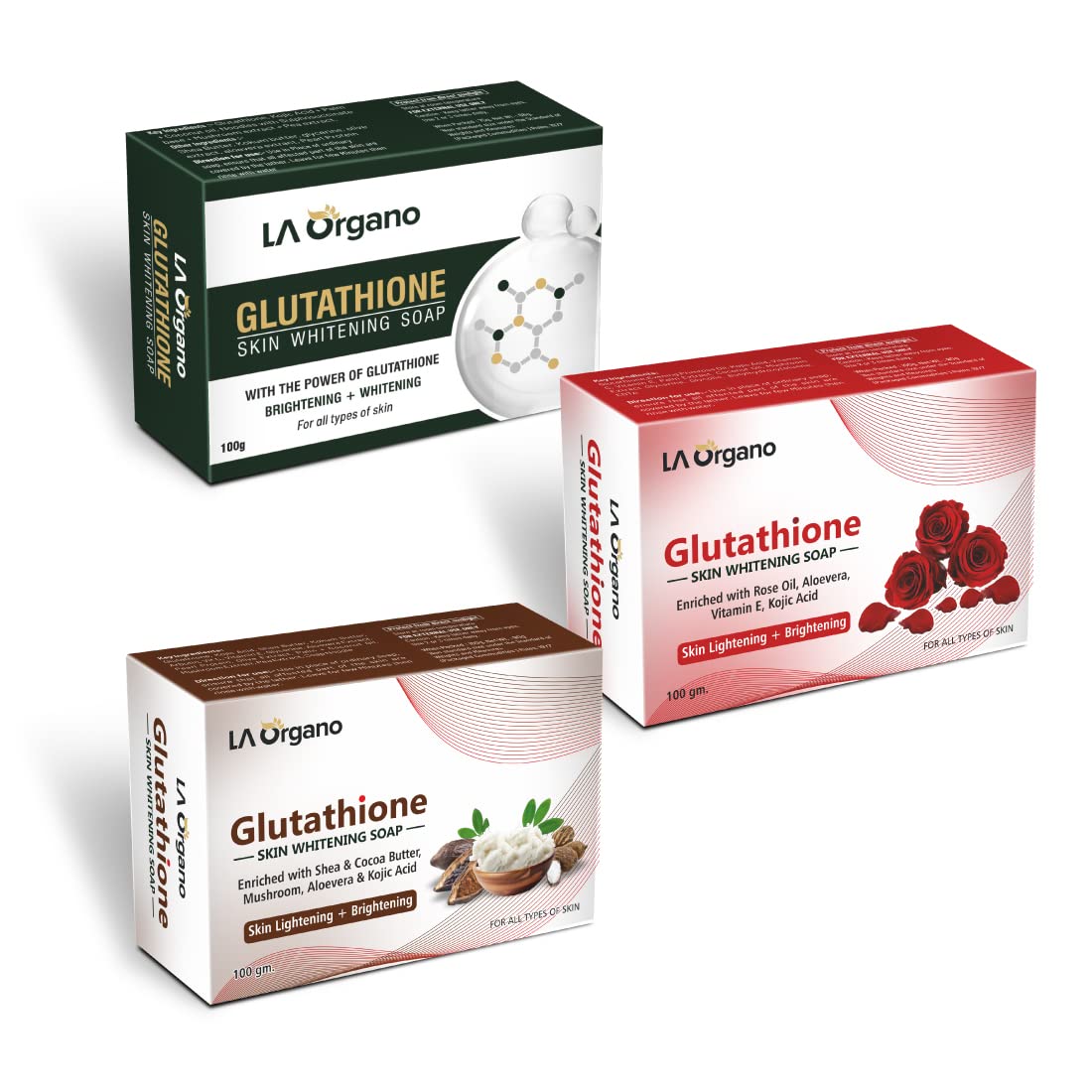 LA Organo Glutathione Green Rose & Shea Cocoa Butter Skin Brightening & Whitening Soap (Pack of 3) 300 g