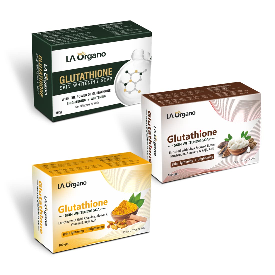 LA Organo Glutathione Green Shea Cocoa Butter & Haldi Chandan Skin Brightening & Whitening Soap (Pack of 3) 300 g