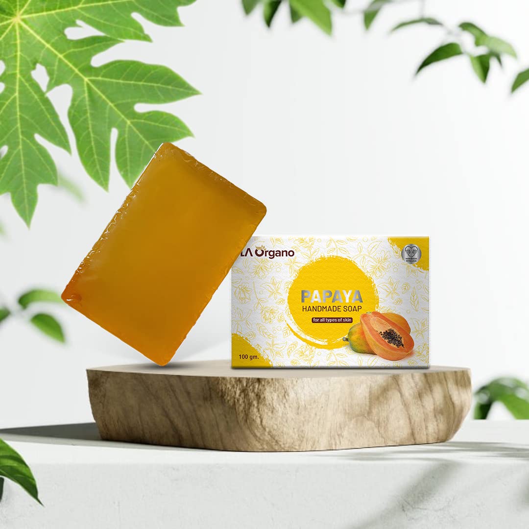 LA Organo Handmade Charcoal Coconut Milk & Papaya Bath Soap (100g each Pack Of 3)