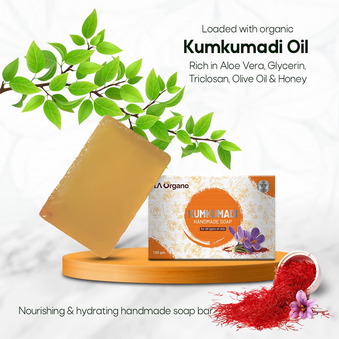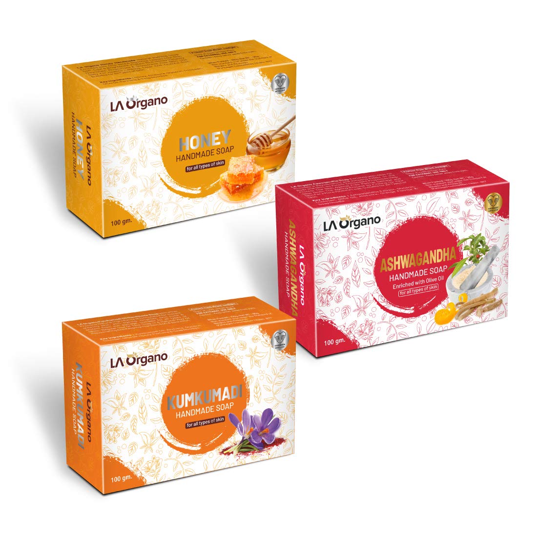 LA Organo Handmade Honey Ashwagandha & Kumkumadi Bath Soap (100g each Pack Of 3)