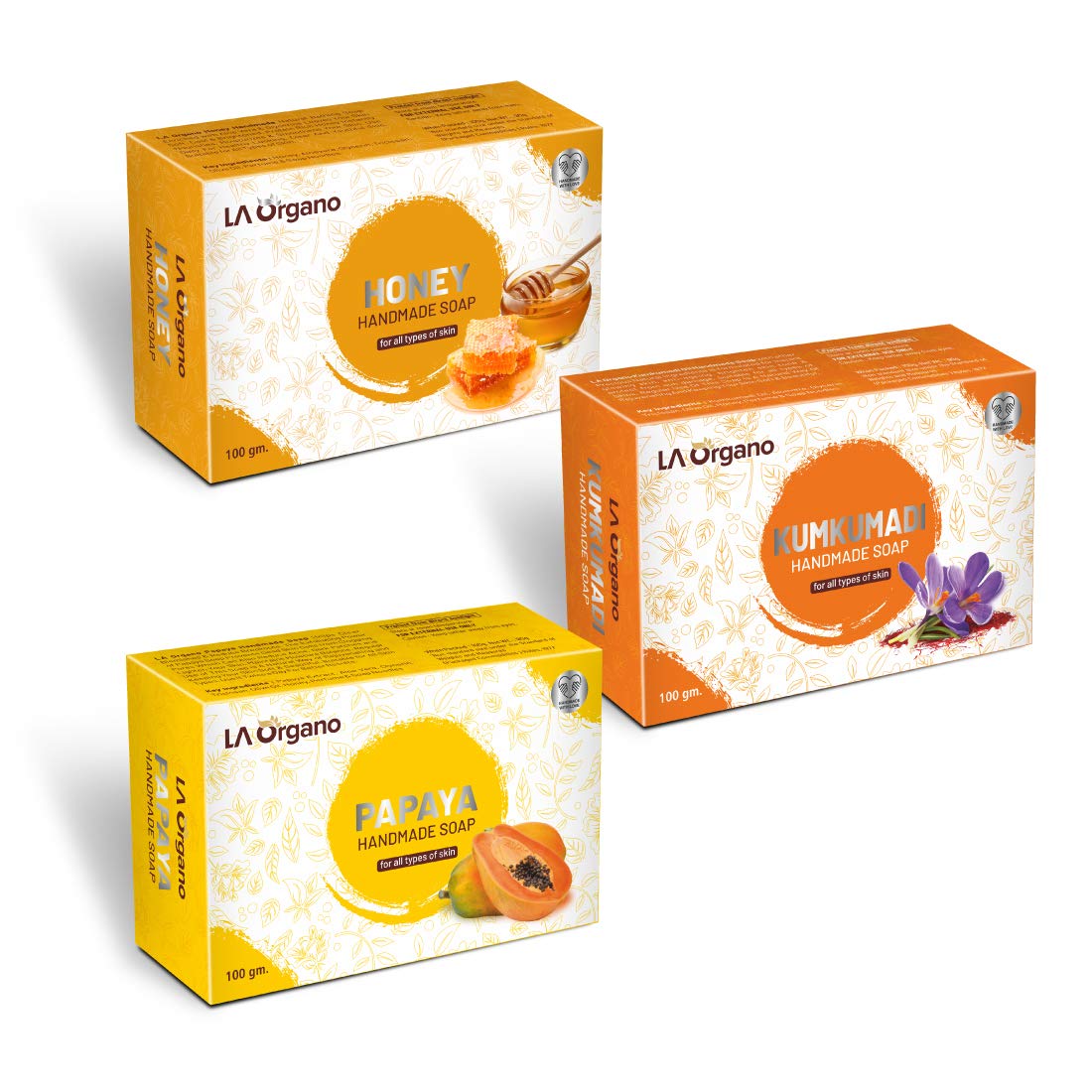 LA Organo Handmade Honey Kumkumadi & Papaya Bath Soap (100g each Pack Of 3)