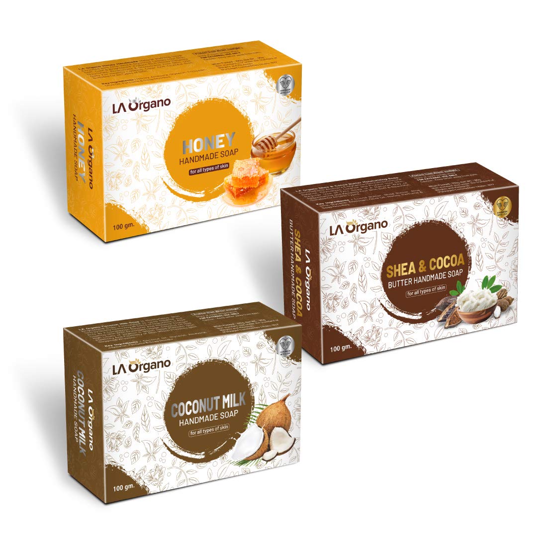 LA Organo Handmade Honey Shea Cocoa & Coconut Milk Bath Soap (100g each Pack Of 3)