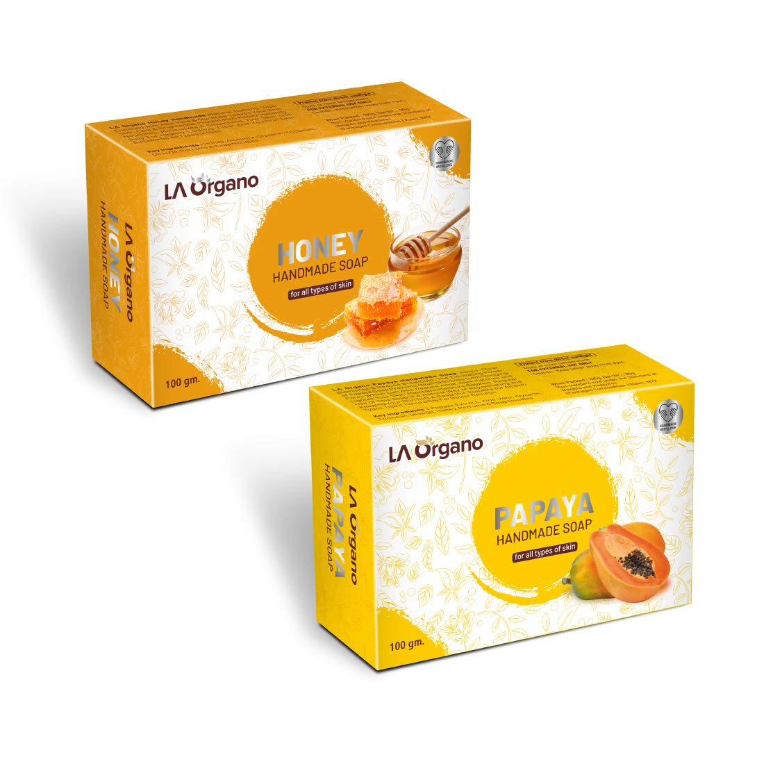 LA Organo Honey & Papaya Handmade Bath Soap (100g each Pack Of 2)