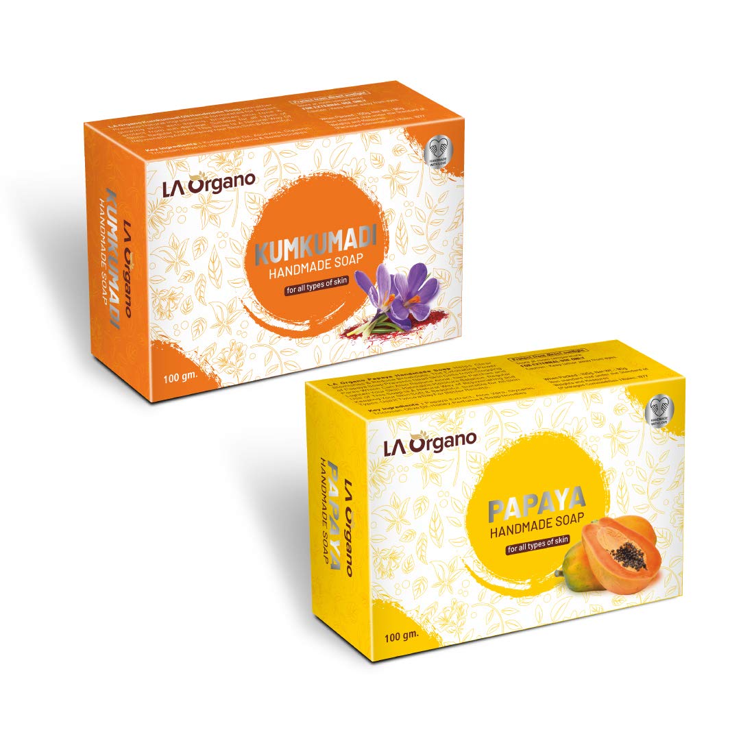 LA Organo Papaya & Kumkumadi Handmade Bath Soap (100g each Pack Of 2)