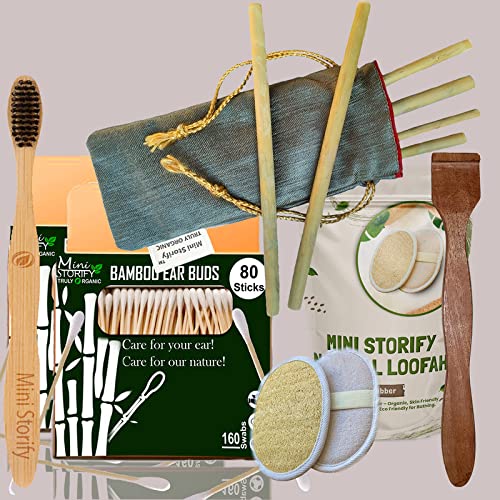 Mini Storify Truly Organic 2.Bamboo Cotton Ear bud1.Adult Bamboo toothbrush,1.Pure Neem Tongue Cleaner 2 Oval Loofah6.Bamboo Straw(Pack-12)
