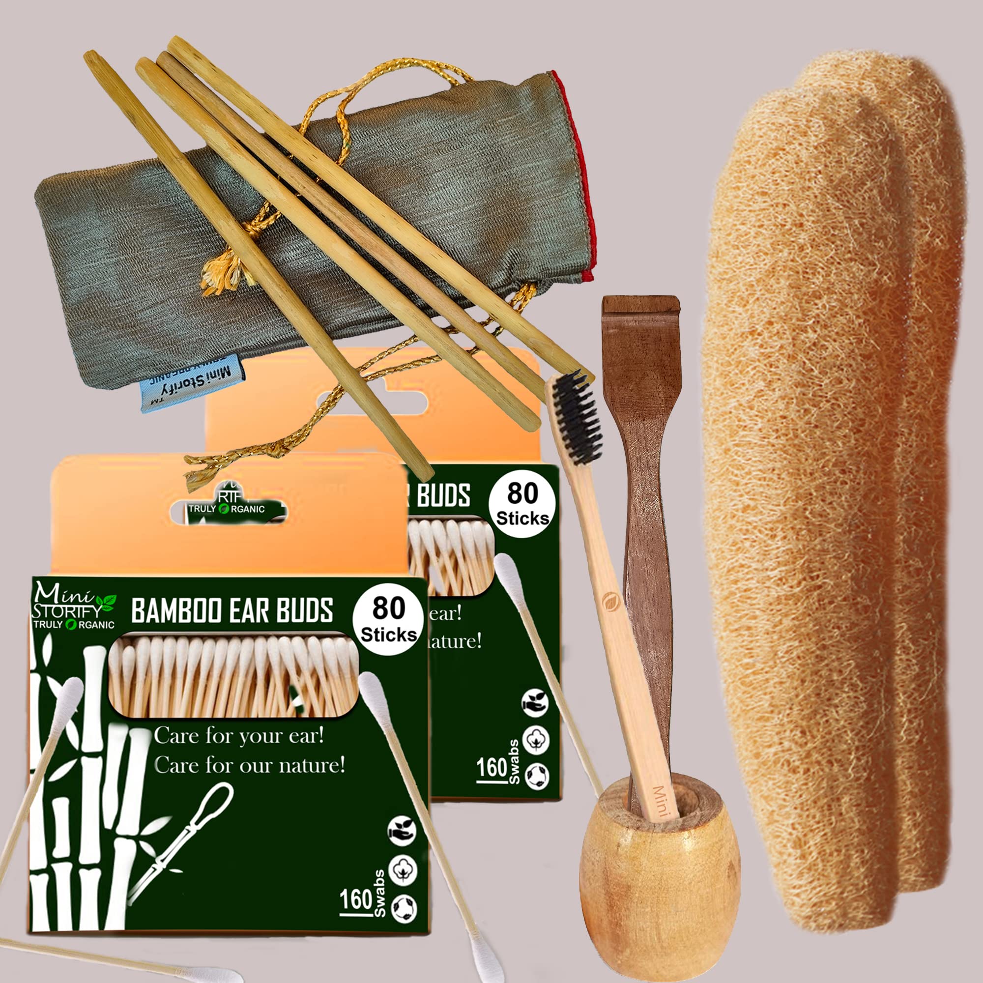 Mini Storify Truly Organic 2.Bamboo Cotton ear bud1.bamboo toothbrush,1.Bamboo toothbrush stand,1.Pure Neem Tongue Cleaner,2.Loufah (PACK-11)