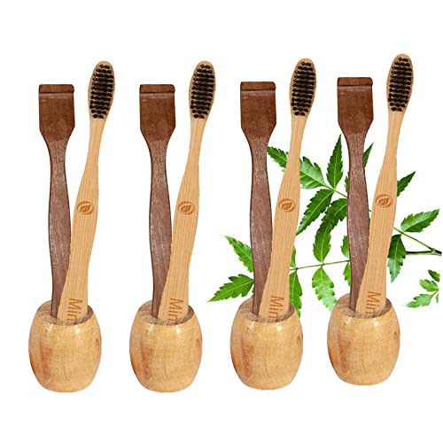 Mini Storify Truly Organic 4.Bamboo toothbrush stand,4.Adult bamboo toothbrush 4.Pure Neem Tongue Cleaner (PACK-12)