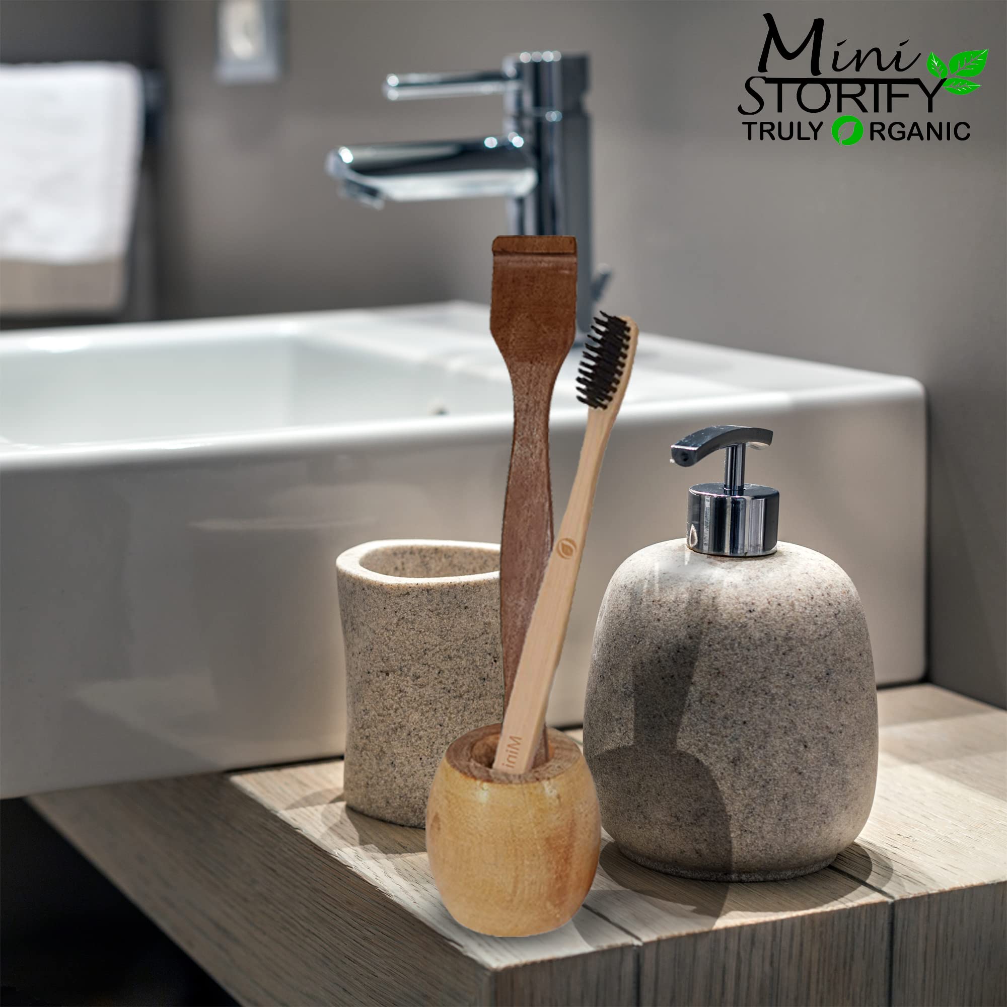 • Mini Storify Truly organic traditional Toothbrush bamboo wood holder naturally gives you a aesthetic look for your bathroom this handcrafted holder has a elegant design & crafted to keep either two brush or one neem / bamboo charcoal brush with tongue cle