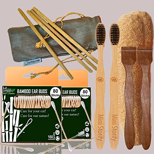 This dual tipped cotton ear buds is suitable for all type sensitive skin, ear & face or removing make up,first aid on adult. Its alternative to plastic Ideal for makeup, cleaning, organic earbuds stems/sticks that do not bend or break during usage used for beauty, applying/removing/wig/touching-up cosmetics, household cleaning, arts & crafts,care, tongues, first aid.High quality dual-tipped. Mini Storify wooden bamboo toothbrush Allowing you to clean your teeth with a clear conscience every day The bristles are made from high-quality nylon, which is soft, perfect for getting all the plaque off your teeth The design is robust & durable The bristles are made from high-quality nylon, which is soft, perfect for getting all the plaque off your teeth. Our bamboo charcoal blended bristles feel soft on teeth & gums Natural body scrubber it is organic exhilarating scrub into loofah pad bath sponges. Natural loofah helps keeps skin healthy & safer to use. Comes with an elastic strap holder that makes it easier for you to scrub with this loofah pad, please soak the loofah sponge in water for a few seconds becomes soft when it is swollen with water it will not stimulate our delicate skin & the skin can be cleaned thoroughly & remove excess grease & dirt gives your skin the natural glow & radianceit is bio degradable unbleached reusable bamboo straws which does not harmful toxic this & biodegradable product is best alternative for plastic in the planet.