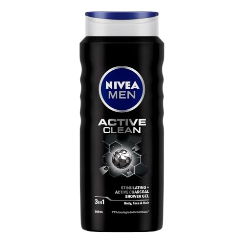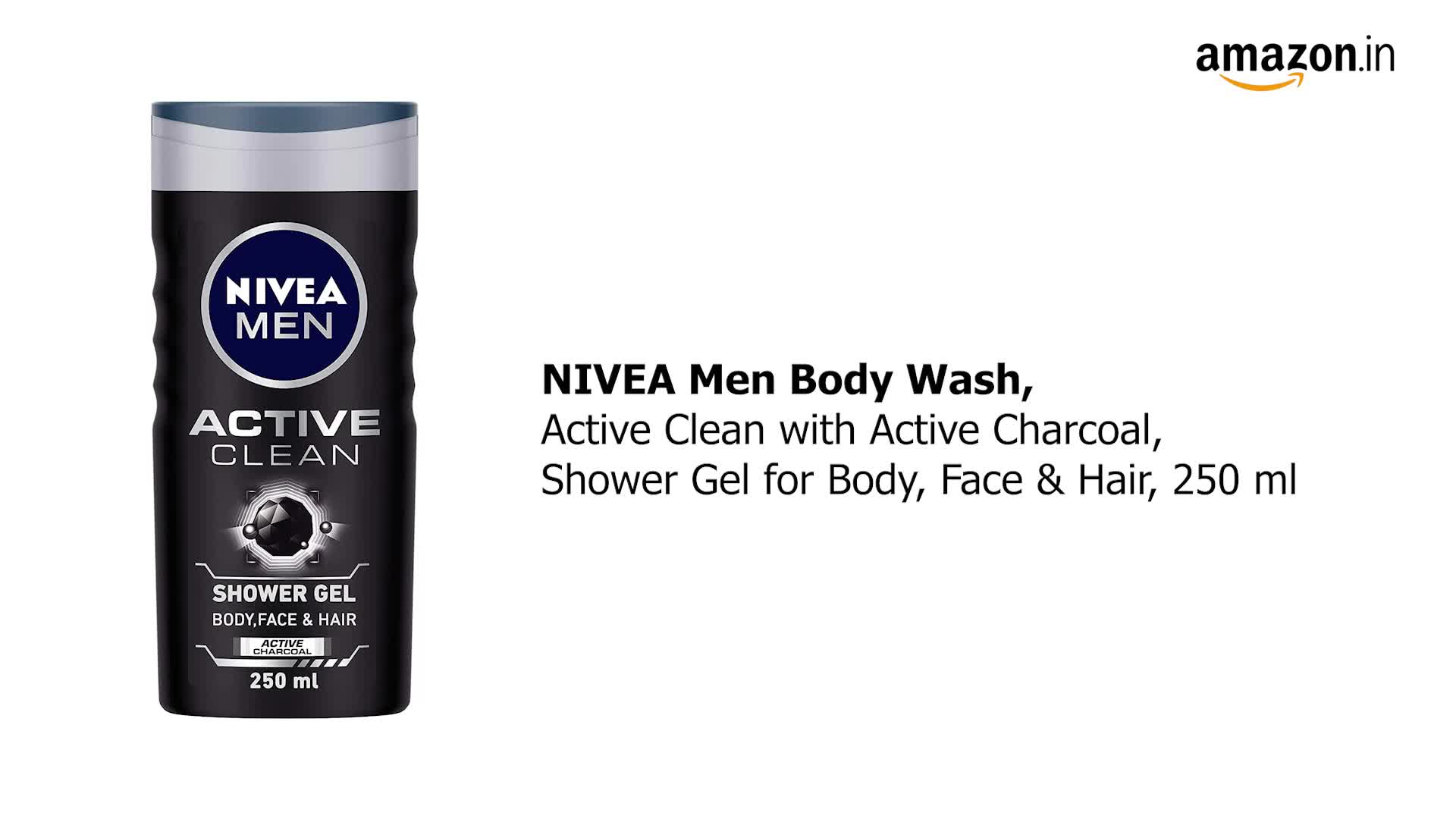3-in-1 deep cleansing shower gel with natural active charcoal. NIVEA Active Clean Shower Gel is for body face & hair has natural active charcoal which works as a dirt magnet and cleanses your skin thoroughly without drying it out