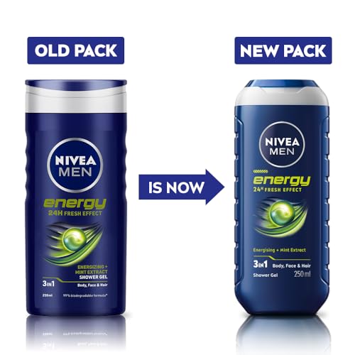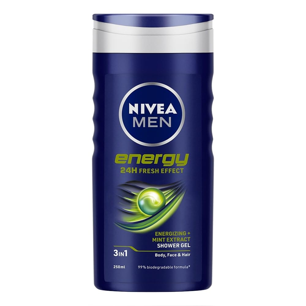 Nivea Men Shower Gel is a 3-in-1 shower gel for men that can be used on body face and hair. It is a deep-cleansing and mild shower gel with a fresh masculine fragrance that revitalises and cares for your skin. It contains energising mint extracts. The body wash is dermatologically approved for skin compatibility and suitable for daily use.