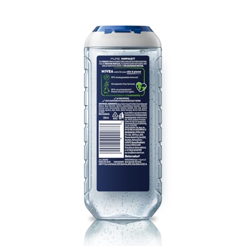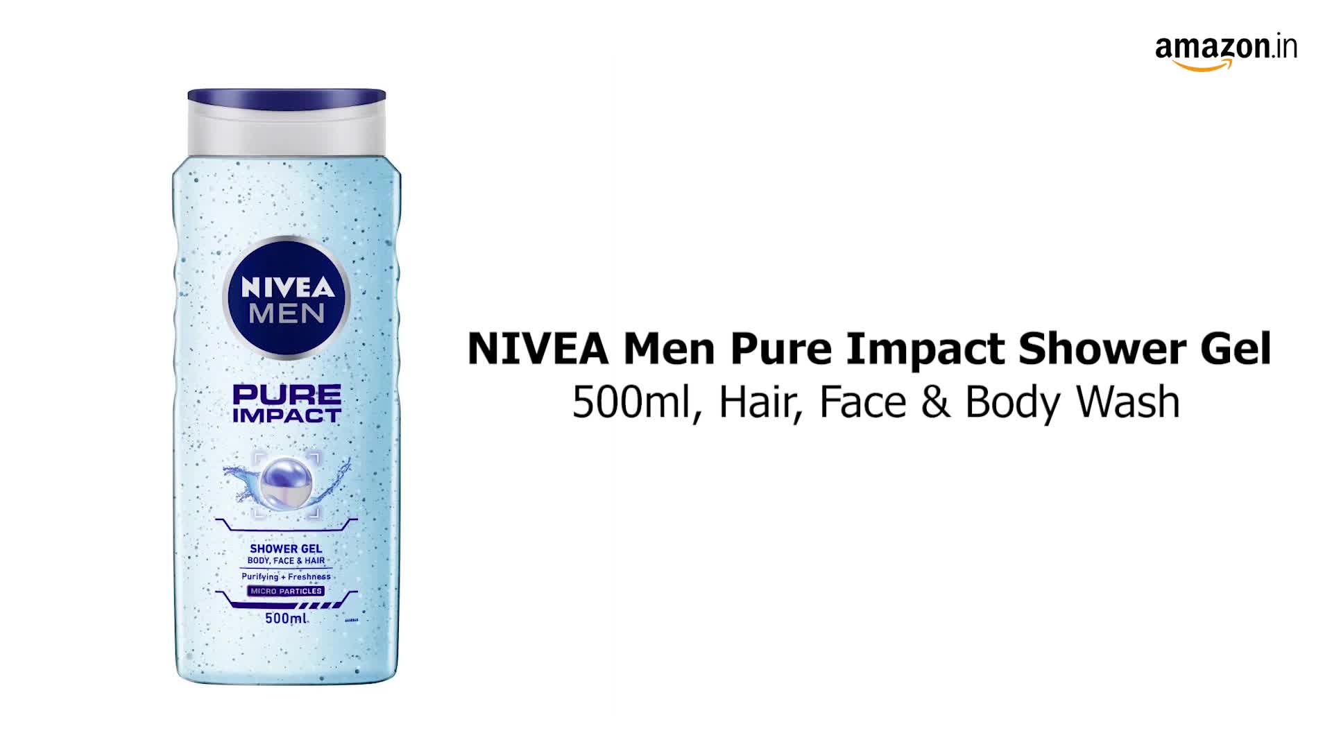 Nivea men pure impact shower gel gives you intensive hydration and effective cleansing with its purifying beads.this innovative 3-in-1 shower gel for body face and hair deep cleanses your skin with its extra fine scrub particles and keeps it moisturised. For that great skin feeling with every shower.skin tolerance dermatologically proven.