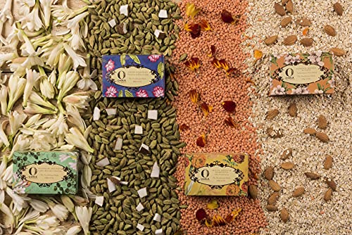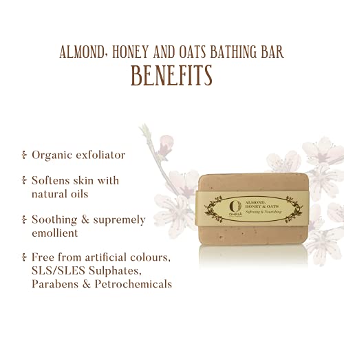 Enriched with nourishing pure honey Almond Oats and Kokum Butter. It cleanses leaving the skin silky soft and smooth. Cold Pressed coconut and wheat germ oil with jojoba extract and Vitamin E moisturize and rejuvenate. A unique traditional bathing bar hand created by blending in milk prepared with crushed almonds and oats.