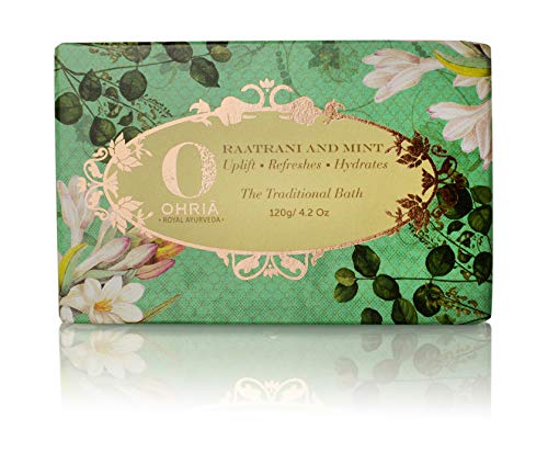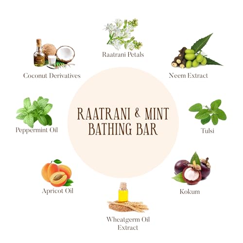 Hydrating reawakening bathing bar created by blending raatrani flowers handpicked at night as the flowers are blooming in their fragrant glory. The flower benefits are extracted using Ancient Ayurvedic method and blended in this bar to give refreshing cooling and uplifting benefits the sultry fragrance reminds of enticing and legendary night blooming Jasmine.