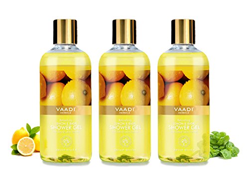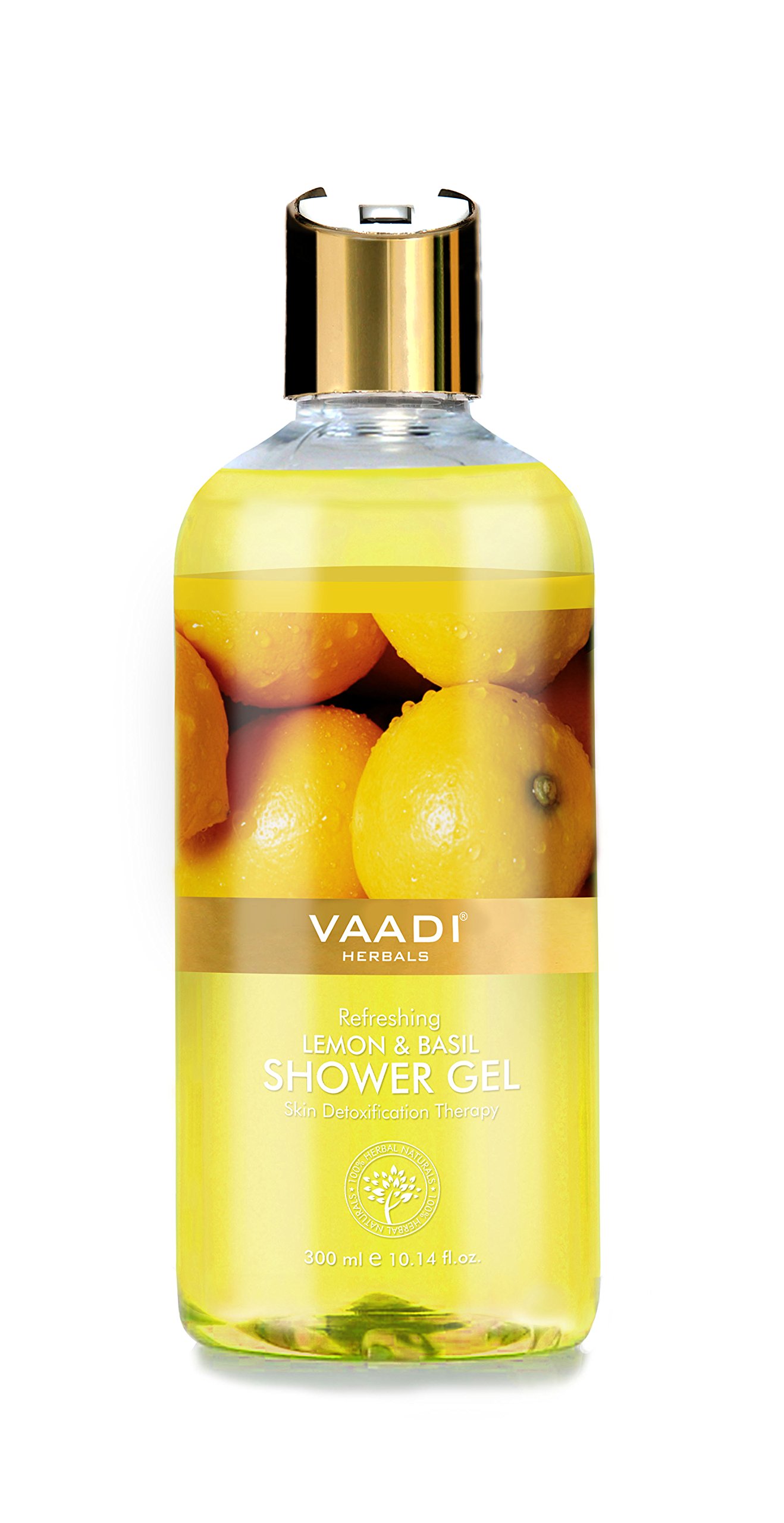 This lemon shower gel is a vitamin c tonic that dtoxifies and brightens up the skin while cleansing it. The basil extract clears the skin pores of dirt grime excess oil and germs.