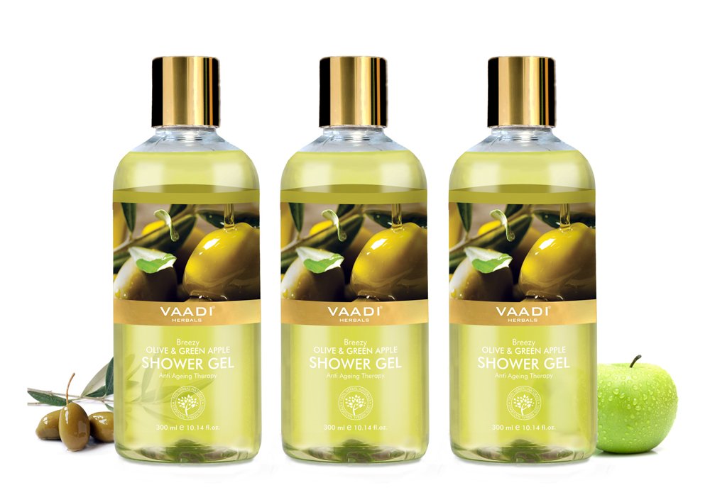Vaadi Herbals Breezy Shower Gel, Olive and Green Apple, 300g (Pack of 3)