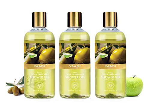 VAADI HERBALS Breezy Shower Gel Olive and Green Apple 300g (Pack of 3)