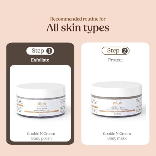 Vilvah's COOKIE n CREAM body polish is the food that your skin needs. Formulated with coffee powder to effectively slough away dead cells while unclogging the pores and fading tan. Alongside Almond milk to firm your skin to leave it supple the medley of Shea butter Olive oil Argan oil helps to nourish and condition skin from top-to-toe. The long lasting aroma helps you feel pampered refreshed and leaves your skin beautifully fragranced.