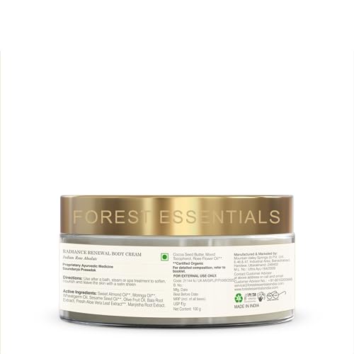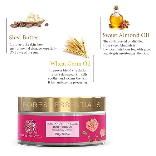 Forest Essentials Radiance Renewal Body Cream Indian Rose Absolute | Ayurvedic Moisturising Body Cream for Dry Skin | Shea Butter & Rose Essential Oil for Glowing Skin