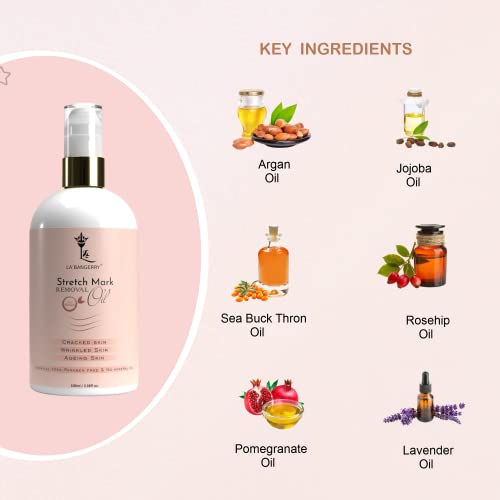 LA'BANGERRY Stretch Mark Removal Oil For Scars Stretch Marks Hair Aging & Skin | Natural Ingredients Vitamin E Oil Olive Oil Coconut Oil & More - 100ml
