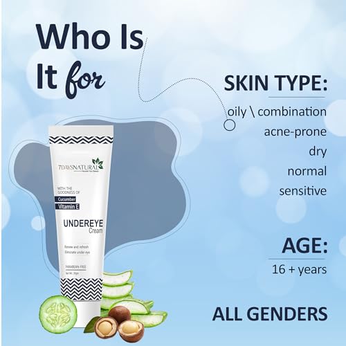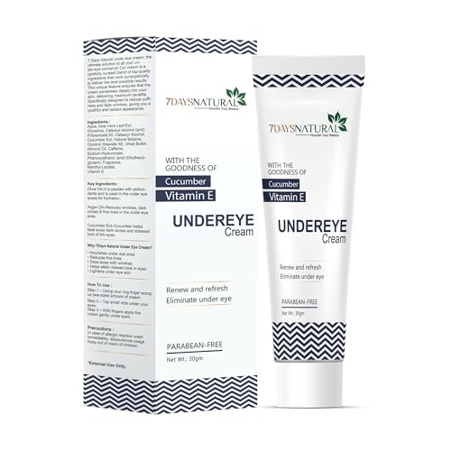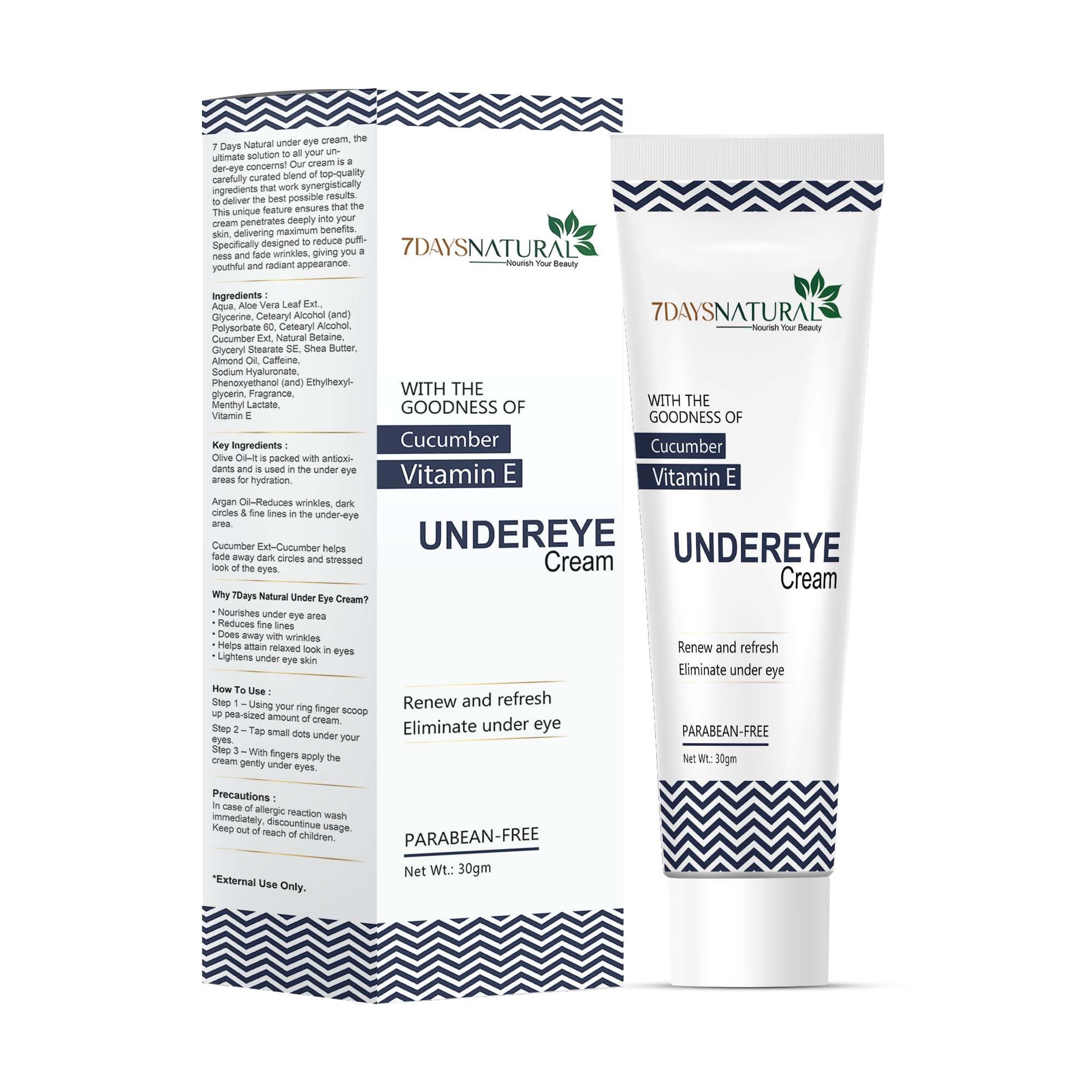 7DaysNatural Undereye Brightening Cream Under Eye Cream | Reduces Dark Circles, Wrinkles & Fine Lines | With Caffeine for Puffiness | For Women & Men 30 ml (Pack of -1)