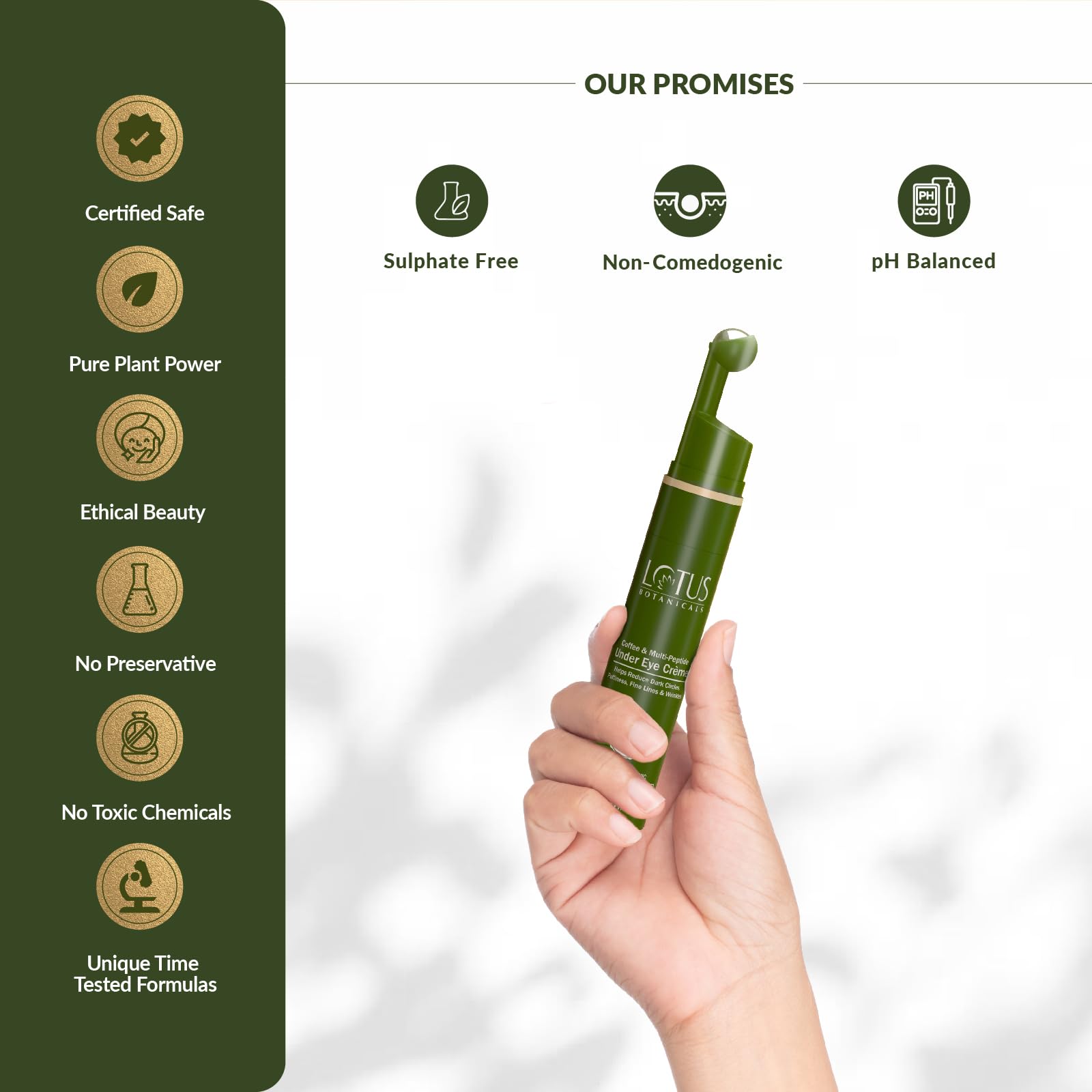 Elevate your daily skincare routine with Lotus Botanicals Coffee and Multi-Peptide Under Eye with Vitamin E a true marvel in the world of natural and plant based beauty. Lotus Botanicals Coffee and Multi-Peptide Under Eye with Vitamin E combines the enriching power of Coffee Extracts with natural Vitamin E to tackle stubborn dark circles reduce eye puffiness and prevent signs of ageing. The Natural Peptides in this under-eye cream can stimulate collagen production enhancing skin firmness while diminishing the appearance of wrinkles and fine lines. As you gently apply this gentle with an in-built soft metallic roller under and around your eyes you'll feel the refreshing touch of revitalization as it works harmoniously to stimulate blood circulation reduce inflammation and promote a visibly firmer and smoother appearance. No matter the causeâbe it long hours at work sleepless nights âLotus Botanicals Coffee and Multi-Peptide Under Eye with Vitamin E and rich nourishing texture hydrates and rejuvenates your skin Unveil brighter more luminous eyes and rediscover your innate confidence all thanks to the Natural goodness of Coffee Extracts and Vitamin E.