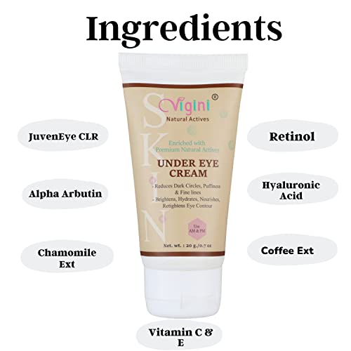 HomeHealth & PersonalSkin CareEye CareEye CreamsVigini Under Eye Gel Cream for Dark Circles Women Men Girls 20g | Wrinkles Puffiness Remover Recovery Lift Puffy Eyes I Anti-Ageing Removal Fine LinesJuveneye Retinol Coffee Hyaluronic Acid Vitamin C
