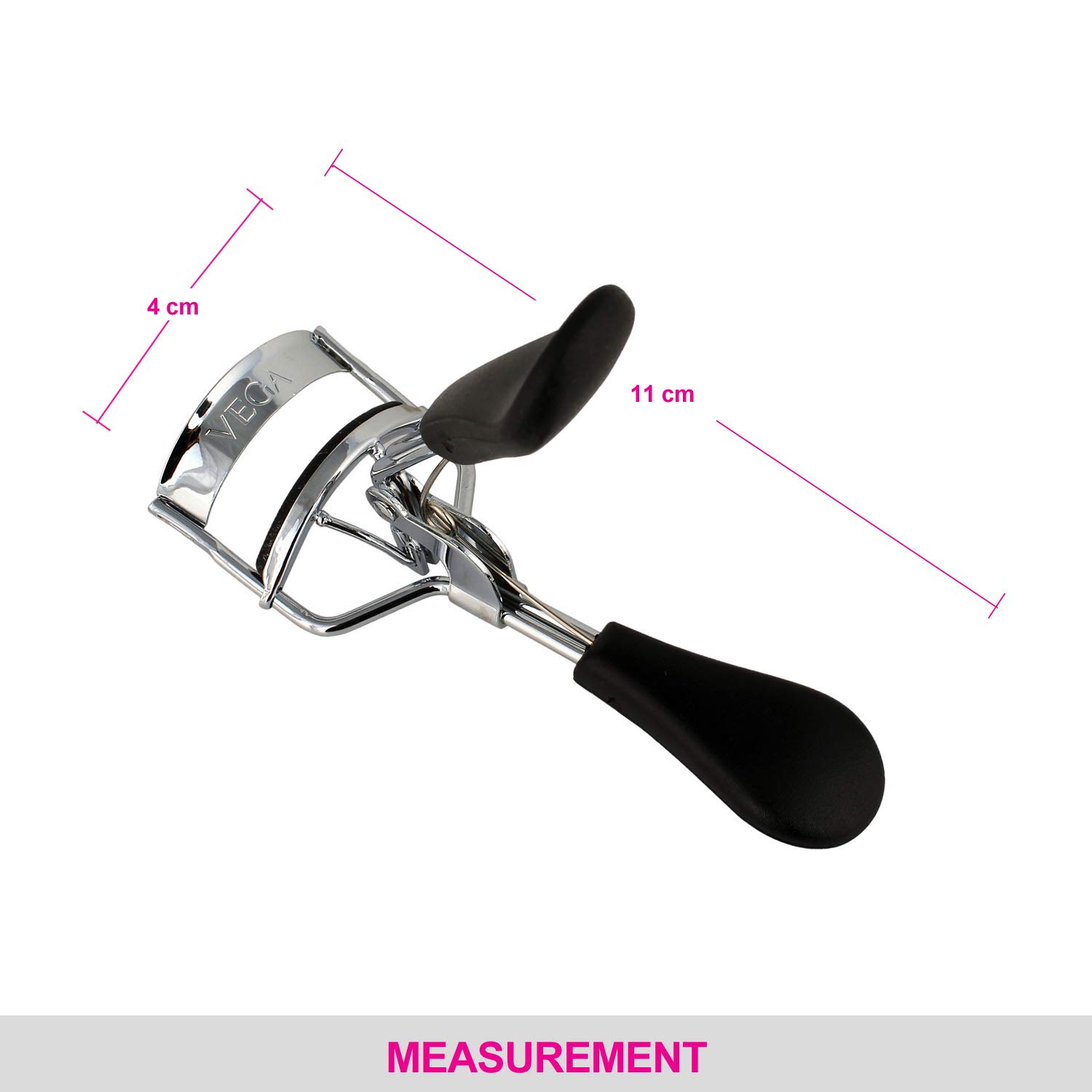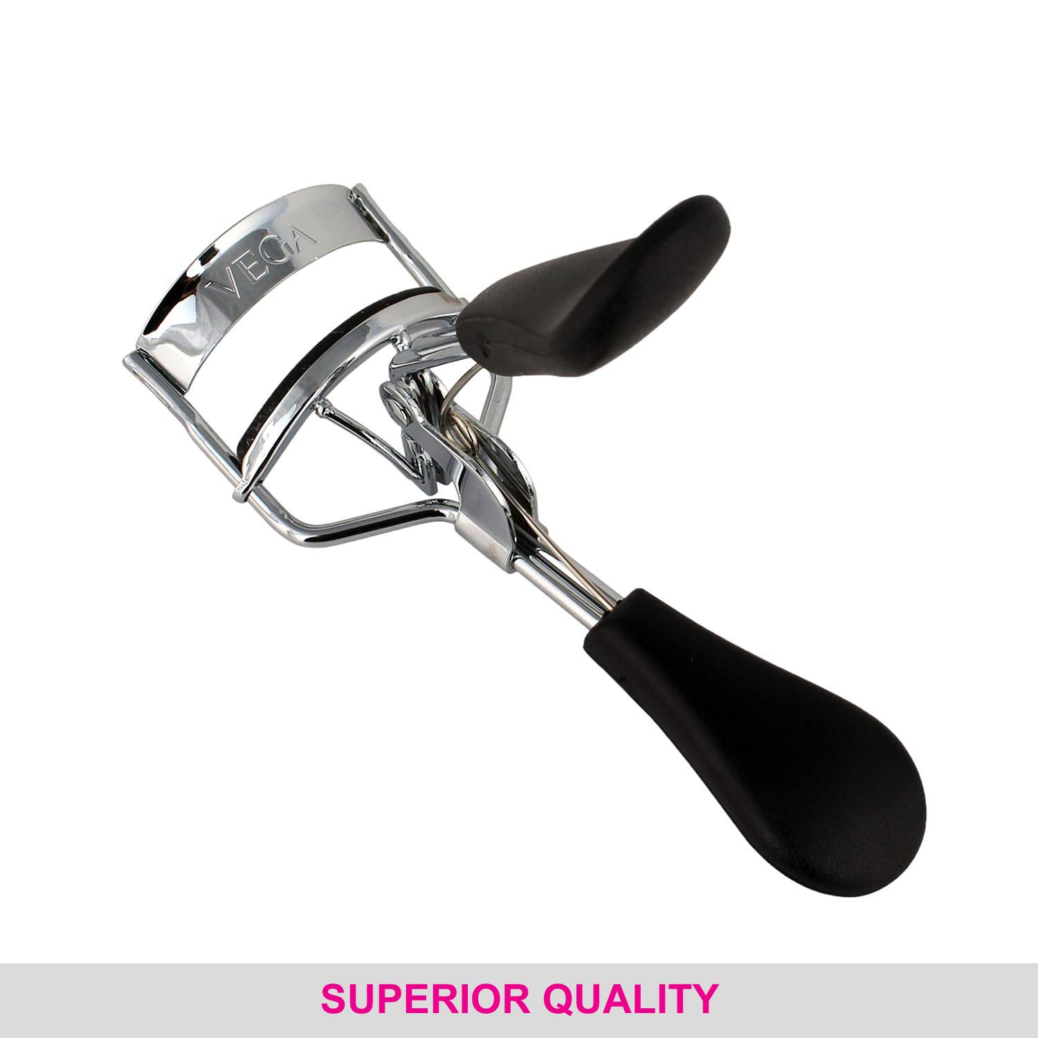 Vega - A one stop shop for head to toe Beauty care accessories. Give your eyelashes the desired curl with Vega premium eyelash curler. It is the ï¬nest eyelash curler available adored by professional makeup artists. The ergonomic design with black non slip grip provides easy grip and precision curling.