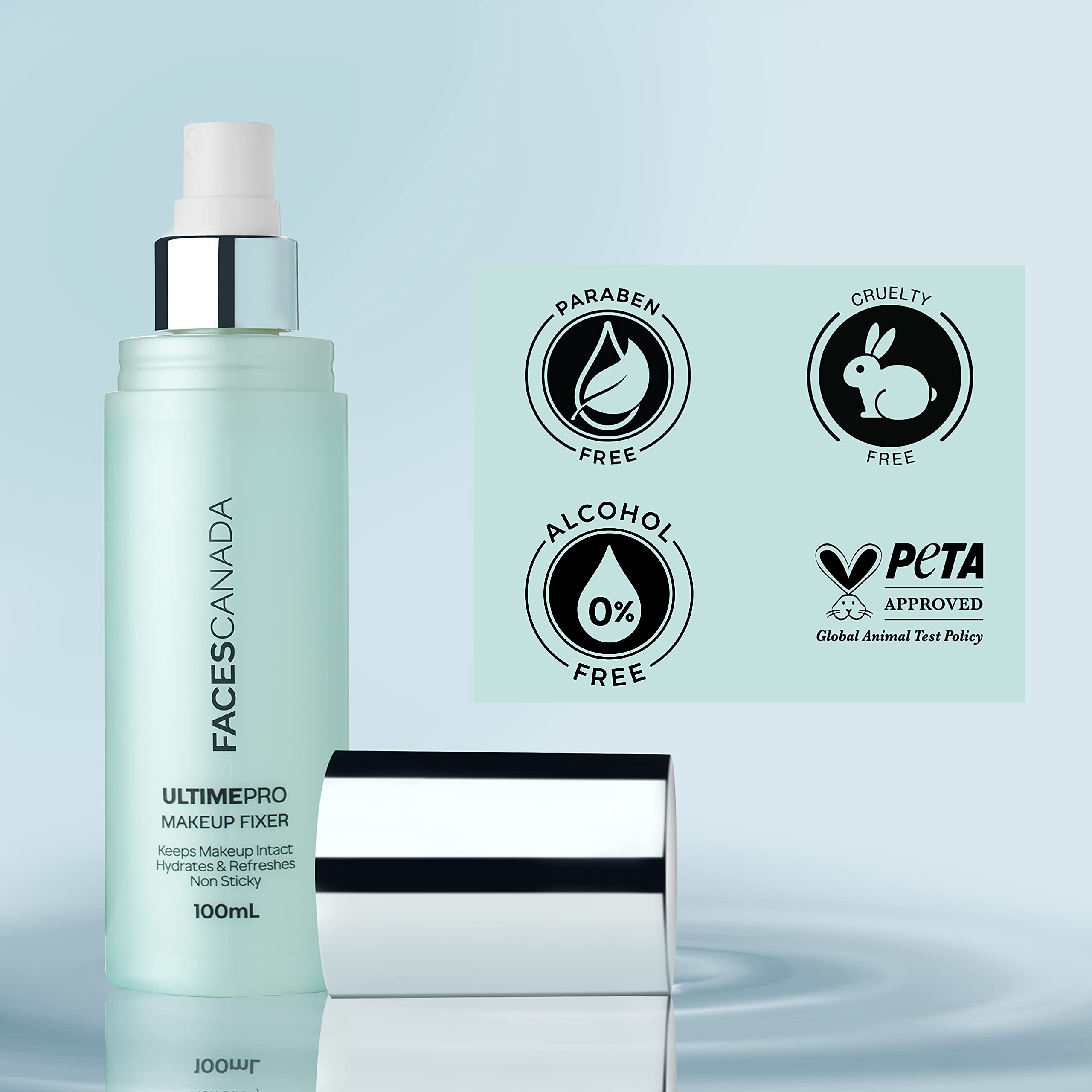 FACES CANADA Ultime Pro Makeup Fixer, 100 ml | Long Lasting Makeup Setting Spray | Keeps Makeup Intact | Hydrates, Soothes & Refreshes Skin | Hyaluronic Acid & Vitamin E Enriched | No Alcohol