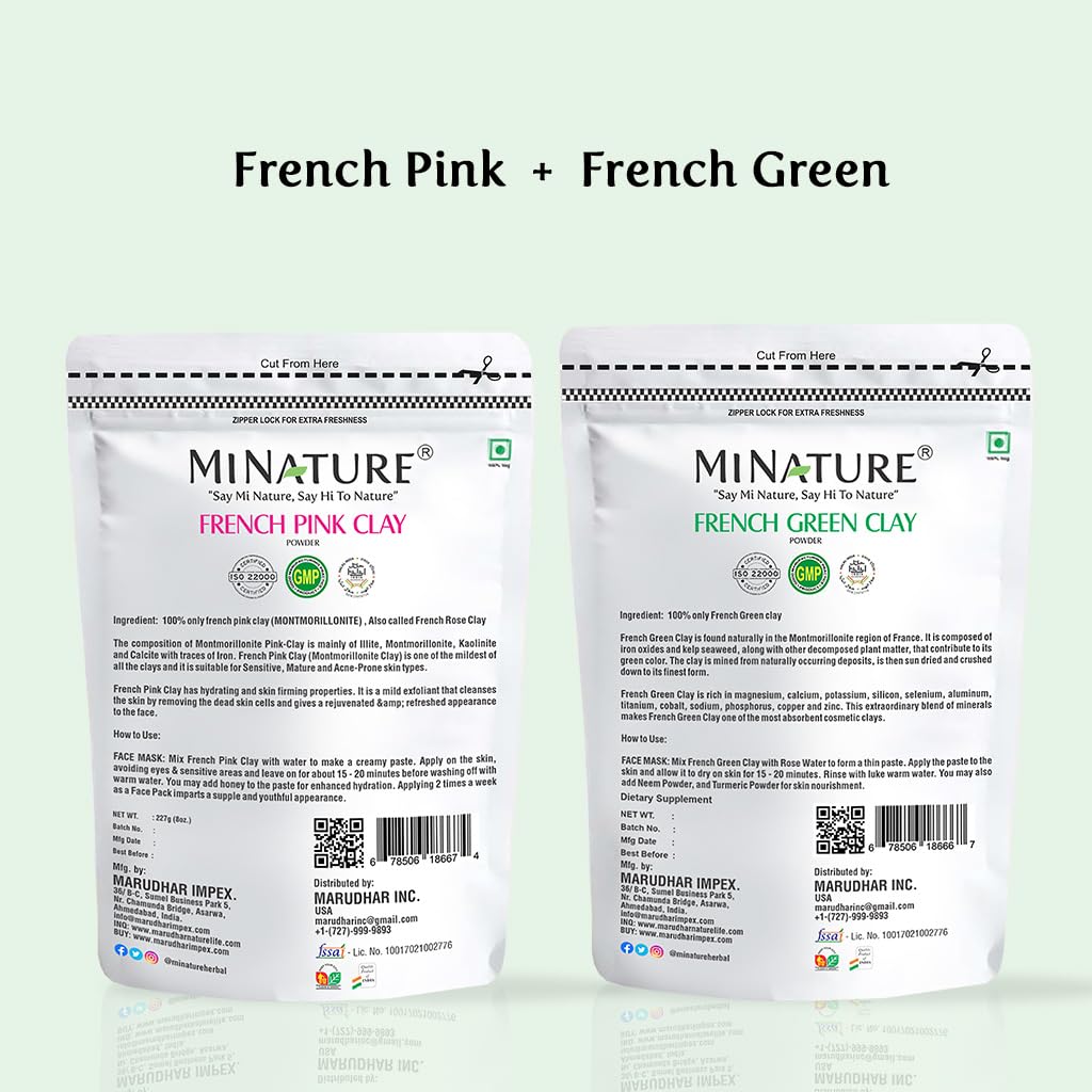 Minature Products are 100% pure and natural ingredients providing a wholesome treatment that avoids the use of synthetic additives and preservatives. French Green Clay is renowned for its oil-absorbing and purifying abilities. French Pink Clay is known for its gentle exfoliating and detoxifying properties helping to improve skin texture reduce redness and promote a healthy glow.