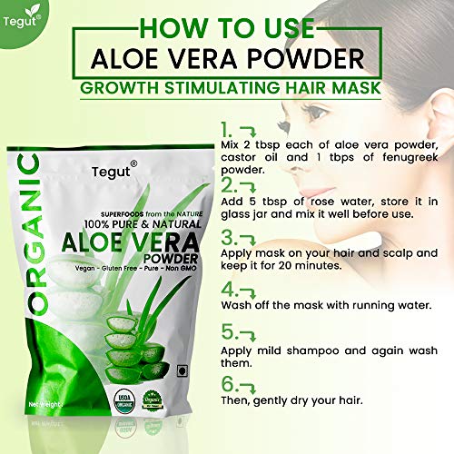 TeAloevera Powder enriched with the goodness of aloevera is a natural rescue for unhealthy and dry hair. With absolutely pure extracts and no artificial inclusion of chemicit is the perfect to healthy and shining hair. Key Features : 1. Absolutely 100% organic without any artificial chemic2. Triple sifted microfine powder with 100% purity of natural ingredients 3. Completely natural and thus absolutely health-friendly 4. Made of fresh crops to ensure the best of results 5. 100% Safe and thus Dermatologist recommended. Benefits : 1. Treats unhealthy scalp with the goodness of aloevera 2. Is highly favorable for hair growth 3. s volume to hair and enriches its texture 4. Nourishes the scalp with required nutrition 5. Good for skin too with its and wrinkle-prevention features 6. Dermatologist recommended and extremely safe for hair as well as skin uses.